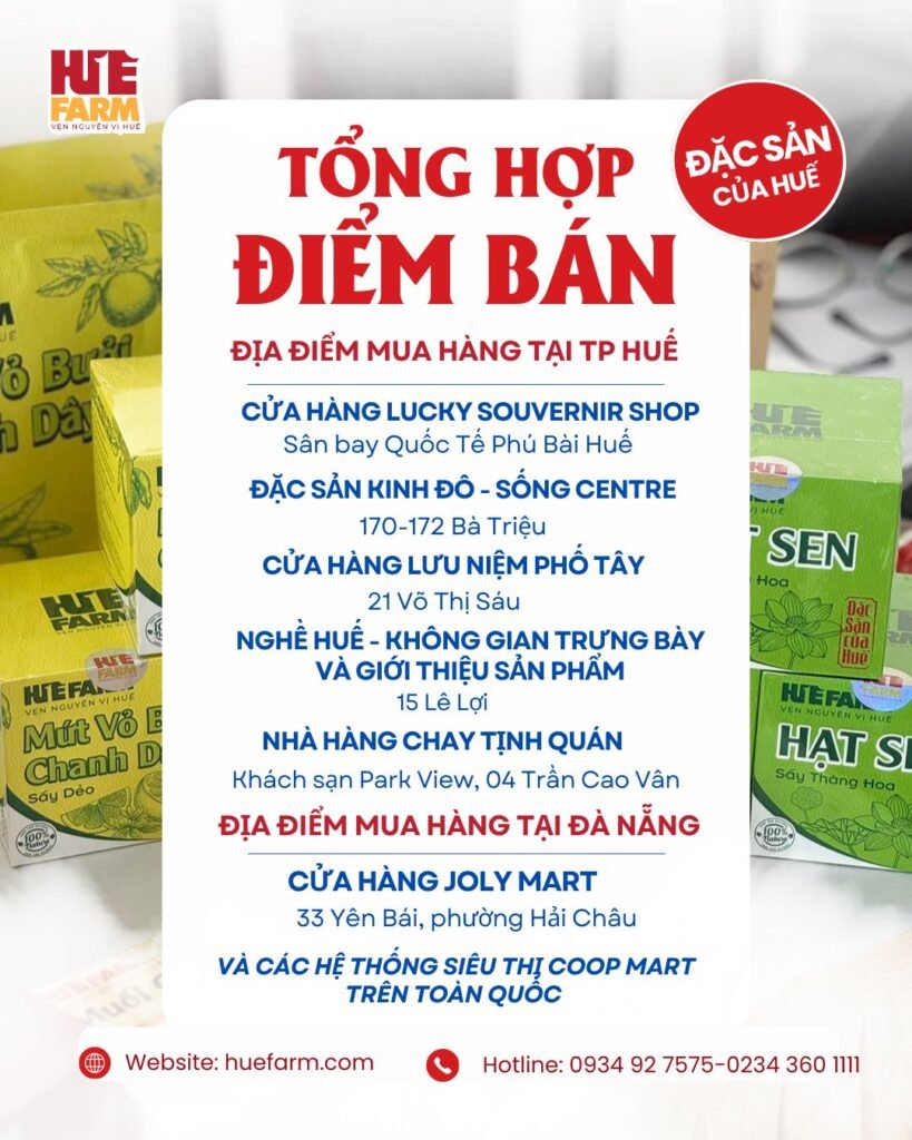 HUEFARM GỢI Ý TOP LIST CỬA HÀNG TÌM MUA CÁC THỨC QUÀ CỦA ĐẶC SẢN HUEFARM DÀNH CHO KHÁCH DU LỊCH NGAY TRUNG TÂM THÀNH PHỐ
